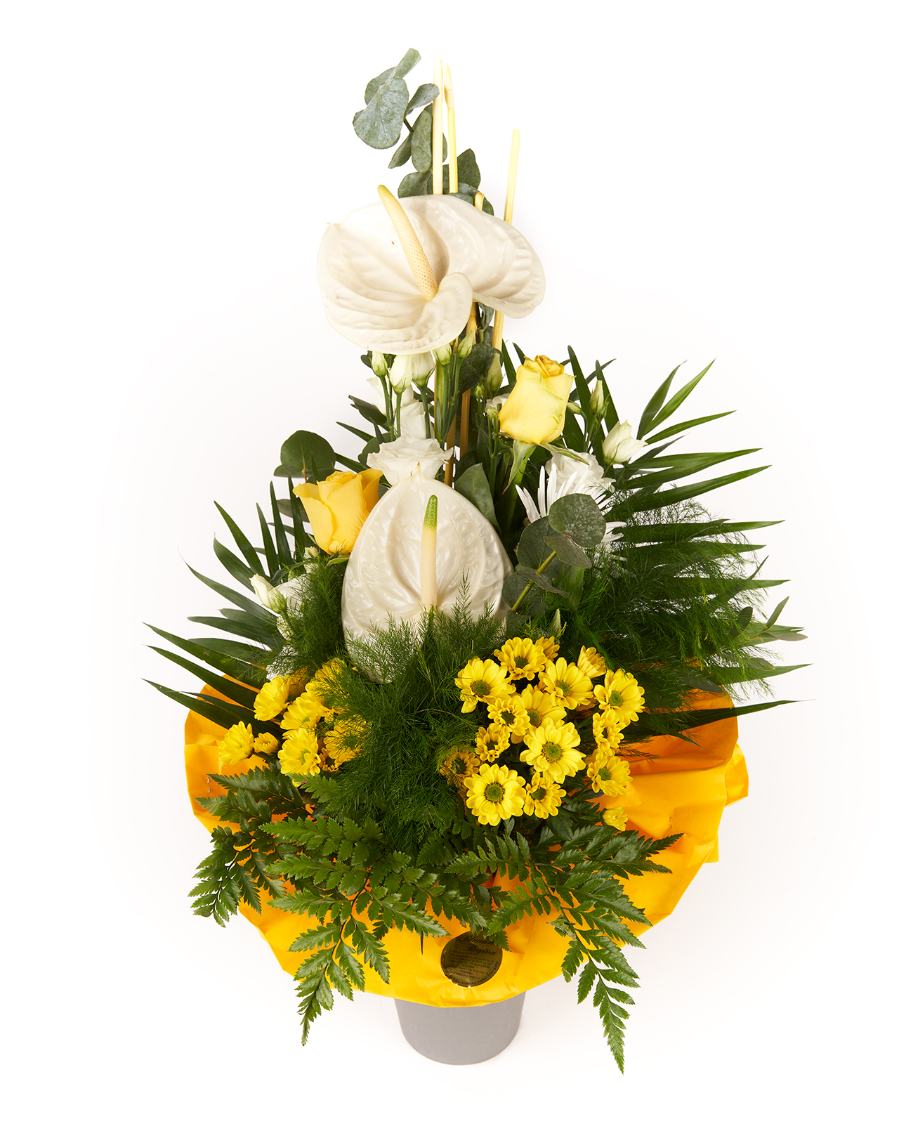 / Hochstrauß mit Anthurien in gelb